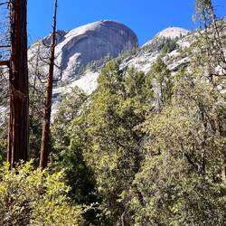 Unseren letzten Tag im Park verbrachten wir bei einer sehr schönen Wanderung durch das Tal des Mirror Lake. Zur linken und rechten steigen die Felsen über 1000 m empor. Der Mirror Lake, in dem sich die Felsen sehr schön spiegeln sollen, hat leider nur im Frühjahr Wasser, wenn die ganze Schneeschmelze in das Tal hinunterfließt. Aber auch so war diese Wanderung sehr abwechslungsreich. Nach dem Fußmarsch stand noch ein Wasserfall auf dem Programm. Leider sind einige ausgetrocknet oder führen im Moment sehr wenig Wasser. Aber schon allein die Vorstellungskraft, wie es im Frühjahr hier sein muss, ließ uns dann doch ehrfürchtig zum etwas mageren Bridalveil Fall hochblicken.