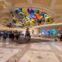 Danach reihten wir uns in die unendlich erscheinende Reihe zum Veranstaltungssaal des Bellagio zur Show ein. Ein kurzer Rundumblick erleichterte, wir waren nicht underdressed, von kurzen Hosen zu Sandalen und Schlabber T-Shirts bis zu langen Kleidern und goldenen Schühchen war alles geboten.