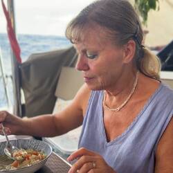 Doris JägerEssen hält die Moral bei langen Überfahrten aufrecht. Morgen wieder mehr zur Segelstellung 😉 Segelstellung seit Tagen die gleiche: Gross und Genua bei Raumschot-Wind.
