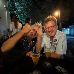Wenige Tage nach uns belegte der superschöne und geräumige Katamaran COGOA neben uns eine Boje. Michael und Axel hatten wir im Oktober 24 in Almerimar kennengelernt. Es handelt sich um 2 Freunde, ehemalige Bergleute, die mit 55 in den Ruhestand gehen durften, und sich jetzt mit der Segeltour einen Lebenstraum erfüllen. Das Wiedersehen war sehr herzlich, viel gab es zu berichten. Einen Abend verbrachten wir zusammen feucht-fröhlich im „la Cantina“, einer ehemaligen Holländischen Brauerei, wo frisch gezapftes Bier ausgeschenkt wird. Ja, Holländisch hört man hier oft Reden, wir sind ja in den niederländischen Antillen. Leider nicht EU, sonst wäre es mit den Warensendungen einfacher 😬.