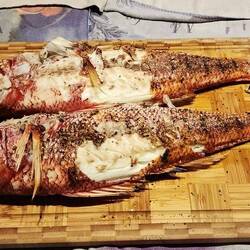 Zurück auf unserer Vitila ging es dann daran, die Conches zu verarbeiten. Wir wollten Conch Fries machen, so wie wir sie schon einige Male auf den Bahamas im Restaurant gegessen hatten. Doris hatte schon Gemüse vorbereitet und fein gewürfelt. Ich zerkleinerte die Conches im Thermomix und stellte einen Teig her, der in der Pfanne knusprig ausgebraten wurde. Gerade als wir uns zum Essen hingesetzt hatten, rumpelte es schon wieder am Boot. Eine Schildkröte war nicht zu sehen, dafür jagte aber ein Hai den Barakuda, dabei waren sie sicher irgendwie an unser Boot geraten. Eine Weile sahen wir dem Treiben zu, danach widmeten wir uns wieder unseren Fries, die sehr gut gelungen waren.Read more