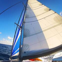 Doris JägerDanke euch. im Moment 3 Meter Wellen, es ist ganz schon was los hier. 2. Reff, und trotzdem noch schnell 🙈