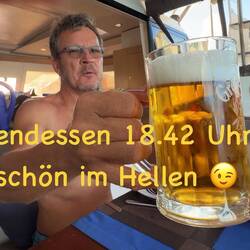 Der heutige Tag stand unter dem Moto Bergfest. Die Frage, die sich mir stellte war, worauf bezieht sich das Bergfest? Zurückgelegte Strecke oder Anzahl der Tage? Wobei ja die zurückgelegte Strecke klar ist, aber was nimmt man als Strecke, die noch vor einem liegt? Vlt. muss man noch einen Umweg segeln?