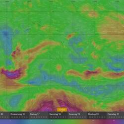 Apropos guter Wind. Der Wind sollte die nächsten Tage bis 28 Ktn auffrischen, das entspricht der Windstärke 7 Beaufort, und das kann man nicht mehr als laues Lüftchen bezeichnen. Die Wellen sollten bis 3,10 m anwachsen, so die Prognose.