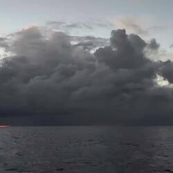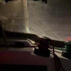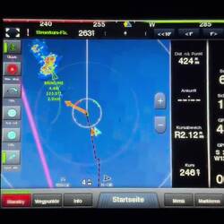Werner folgte uns also im Gewitter, und ich beobachtete ihn auf unserem Plotter. Er näherte sich einer starke Zelle, drehte sich aber plötzlich im Kreis. Erst dachte ich, er will die Zelle vorüberziehen lassen und mir dann weiter folgen. Er zog die Runden aber mit 5 - 7 kt, was schon sehr ungewöhnlich ist. Später stellte sich heraus, dass sein Autopilot ausgestiegen war und er förmlich durch die Böen hin und her geschmissen wurde. Sein Kommentar dazu: „Bin hier irgendwie gefangen. Unglaublich, mich haut es von einem Squall zum nächsten, dreh’ mich fast im Kreis ( und es war ja auch so….!). So etwas hab ich noch nie erlebt, und das sehenden Auges 👎👎👎👎“.
