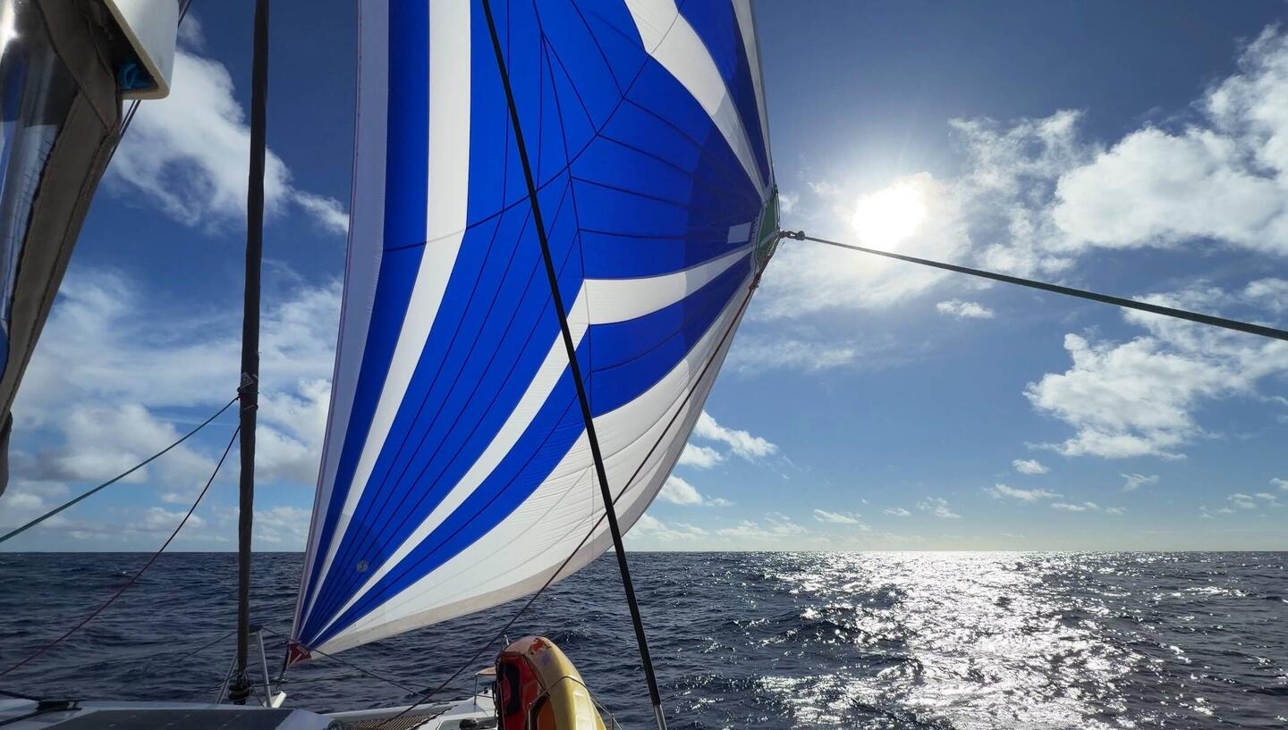Das Leichtwindsegel zieht uns durchs Wasser, als ob wir eine Feder wären. In diesem Moment weiss ich, wie schön Segeln sein kann, und wie sehr ich das liebe. Die Kämpfe mit Winddrehern, gerissenen Leinen und zerbrochenen Blöcken sind vergessen. Die Entbehrungen, wie in den letzten Nächten, gehören genauso dazu. Umso mehr können wir diese Momente dann genießen.