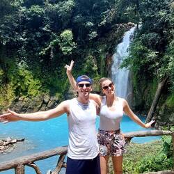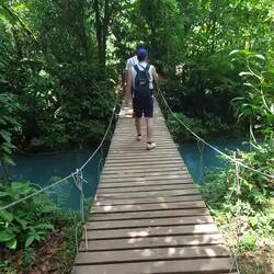 Dopo circa un'ora e mezza di bus arriviamo al parco nazionale del Vulcano Tenorio e da qui raggiungiamo la cascata a piedi (lunga camminata, un sacco diOkumaya devam et