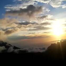 When we got there it was completely in the cloud, so we weren’t too hopeful but about 15 minutes later a whole layer of cloud cleared and we had the most amazing view- impossible to even describe. Probably the best sunset I have ever seen. The bad thing about sunsets is that you then have to drive back in the dark- 10km back to town but the convoy was helpful for seeing where to go and our bike lights are pretty good.