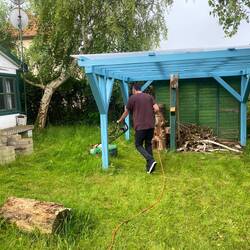 Wenn man in Lydias Bungalow Urlaub macht, muss man auch den Garten pflegen und Rasen mähen. Den trockenen & sonnigen Vormittag haben wir dafür genutzt 😁