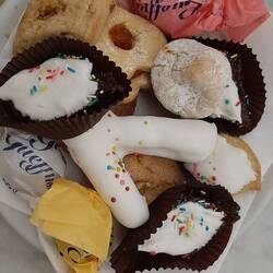 (Ost-)Sardische Spezialität: Eine Art Kartoffelbrei mit Minze im Teigmantel. Lecker! Nach dem Urlaub sehe ich genauso aus...ich durfte heute in einem Restaurant auch welche machen. Links oben einLeer más