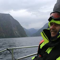Départ en zodiac pour voir au plus près ces fjords majestueux, engoncés mais bien au chaud dans nos combinaisons étanches jaune fluo.
