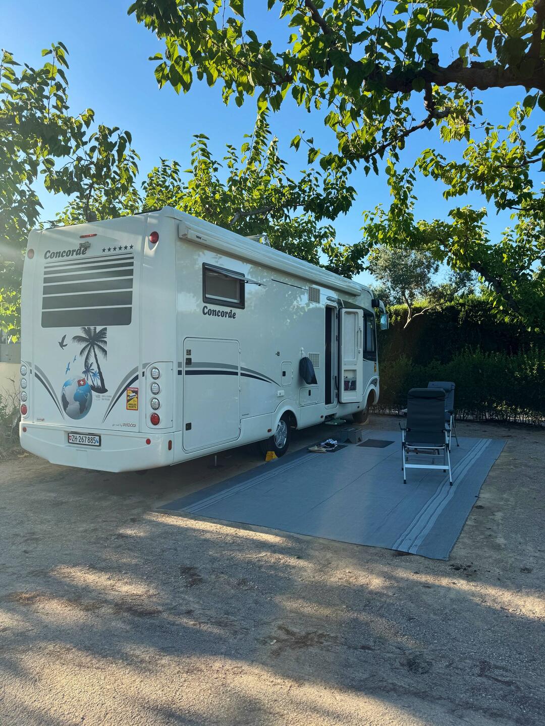Wir sind wieder wie letztes Jahr bei Corinne & Daniel Billard au ihrem FP Platz. Jetzt erst mal den Apéro geniessen.
