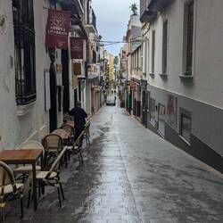 Ja auch hier kann es Regen. Die Spanier freuen sich denn es herrscht hier Wasser Mangel. Stadt Rundgang bei Regen Wetter in der gut erhaltenen Altstadt. Und ja der Strand wäre recht schön.