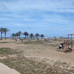 Heute 280 km Fahrt nach Denia und Vorgeschmack auf den Strand. Keine Hotel Liegestühle am Strand.