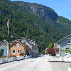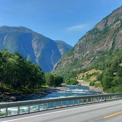 Arrivé à Laerdalsøyri, j'ai fait une pause repas et je me suis ensuite mis en route pour l'ascension des 1309 mètres. Ce coup ci, je pars de l'altitude 0. Je n'avais pas l'intention de faire l'ascension complète aujourd'hui et la suite des événements allait me contraindre à en faire encore moins.