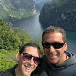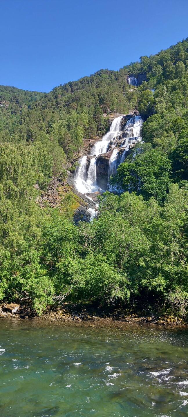 La journée a commencé tard : je suis parti vers 10h45. Quelques centaines de mètres plus loin, j'aperçois un camping-car français sur un parking. Des vendéens plus exactement. Je n'ai croisé que peu de monde depuis 3 jours. Je décide donc d'aller leur dire bonjour. Karen et David dispose de 15 jours de vacances et ils vont se balader en Norvège sud-ouest. Je parle de mon voyage bien sûr, de mes motivations, d'Awar Bonyolo. Là-dessus, Karen me propose un café, ce que je considère comme une entrée en matière plutôt très sympa. Et David, séduit par le travail effectué par les bénévoles d'Awar Bonyolo et par les projets de l'association m'a proposé de faire un don, ce que j'ai accepté avec reconnaissance. Merci à vous deux et bon voyage. On reste en contact.