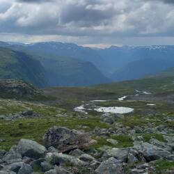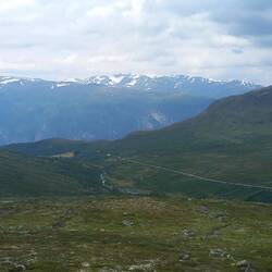Après des kilomètres interminables sur le plateau montagneux,...descente, montée, descente, montée.... me voilà en descente jusqu'à Aurland, petite bourgade à 6 km de Flåm. Mais avantBaca lagi