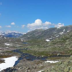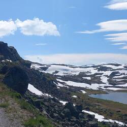 1335 mètres d'altitude. Je n'irai pas plus haut et ça me suffit. J'ai été comblé par la beauté des paysages aujourd'hui. Le Rallarvegen est exigeant aussi. Bonyolette, ma fidèle bicyclette, aMeer informatie