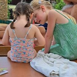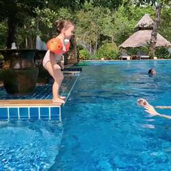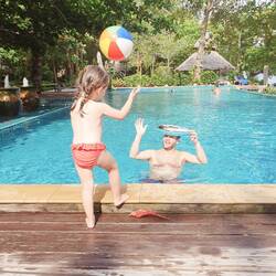 Nach einem gemütlichen Spielnachmittag am Pool haben wir mit unserer Poolbekanntschaft (und Romy's neuer besten Freundin 😉) einen gemütlichen Abend inkl. Feuershow verbracht.