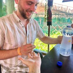 Wir dürfen Rapé und Mambé selber machen und probieren. Das sind Coca Blätter, die überm Feuer getrocknet werden. Danach werden sie in ein hohes Holzgefäß getan, wo man dann mit einem dickenRead more