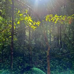 Mit dem Jeep geht’s aus Leticia raus zu einer Straße, von wo wir abgeholt wurden. Wir mussten ein bisschen durch den Dschungel, aber nicht so weit wie zum Lago Piraña.