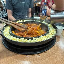 Ich war sehr überrascht darüber, wie sehr ich koreanisches Essen mag. Es gibt sehr sehr viel Kimchi, immer und überall, und das Essen ist meistens leicht bis mittel scharf, aber lecker.