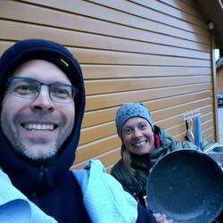 Zum Abendessen gab es Meerforelle, allerdings erst um 23 Uhr. Spülen war dann gegen Mitternacht angesagt. Es ist jetzt 00:30 Uhr und weiterhin hell. Übernachtet wird heute am Strand.Read more