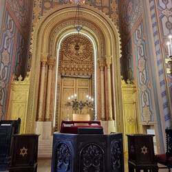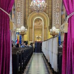 Danach gehen wir in die Altstadt und besuchen die jüdische Synagoge. Das Wachpersonal fängt uns freundlich ab. Bevor wir eintreten können, muss einer von uns seinen Personalausweis abgeben. Die Personalien müssen überprüft werden. Es stimmt schon nachdenklich, dass derartige Maßnahmen noch immer notwendig sind. Dafür erfahren wir einiges über die geschichtliche Vergangenheit und die aktuelle Situation der in Rumänien lebenden Juden.