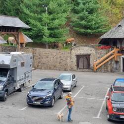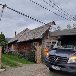 Zum Übernachten fahren wir auf einen privaten Stellplatz, in den Ort Oncenti. Ein Rumäne bietet dort seinen Hinterhof für Camper an. Als wir vor dem Haus stehen, wird klar, aufgrund der Höhe unseres Bimobils kommen wir nicht unter dem Stromkabel durch.