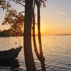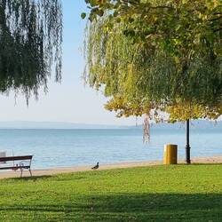 Vor lauter Begeisterung verlassen wir die Route A und finden eine Route entlang des Sees durch einen schönen herbstlich geschmückten Wald.