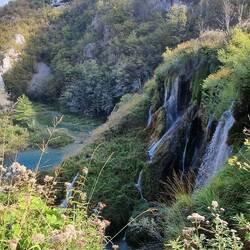 Mit den vielen Menschen starten vom Ticketverkauf. Die Aussichtsplattformen zum Fotografieren nutzen wir so wie die meisten Besucher. Wir kommen mit Pepe erstaunlicherweise gut voran. Anfangs werden wir über zahlreiche Stege zum „Veliki Slap“ (Großer Wasserfall - der größte Wasserfall ganz Kroatiens) geführt. Hierin gehen alle Besucher. Also quasi ein "Muss".
