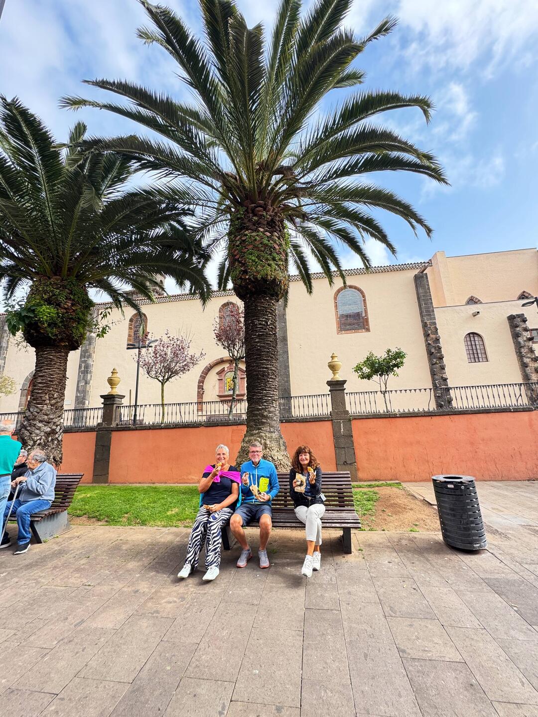Wir haben um 8 Uhr in Teneriffa angelegt, AIDAperla war schon da und Costa Fortuna ist für 10 Uhr angekündigt. Wir treffen uns mit A&B und machen uns auf die Socken, unser Ziel ist die Straßenbahn. Dort angekommen sehen wir einen Jungen, der am Fahrkartenautomaten steht. Er fragt uns wo wir hin wollen, gibt es ein und fragt wie wir bezahlen wollen. So kommen wir ruckzuck an unsere Fahrkarten. Wir sehen, dass er das bei allen so macht und immer ein wenig Kleingeld dafür bekommt. Also bekommt er von uns auch etwas, gute Geschäftsidee. In der Straßenbahn dann fast nur deutsche, zwei Kreuzfahrtschiffe auf den Weg nach La Laguna. Nach einer halben Stunde sind wir in der Altstadt auf dem Berg angekommen. Wir tingeln durch die Gassen, probieren Empanadillas und shoppen ein wenig. Gegen Mittag geht es zurück in die Stadt, das erste Café in der Sonne ist unseres. Baraquito, Cappuccino und Sangria wird probiert. Dann geht es in die Shoppingmeile und nach drei Stunden wieder ins Café, diesmal gibt es auch noch Oliven, Churros und Serano Schinken zu den Getränken. Es gibt ja auch kaum etwas auf dem Schiff. Wir haben bei 20 Grad einen schönen Tag, in der Vorschau für unsere letzten Ziele sieht es nicht so rosig aus, aber warten wir es erst einmal ab.