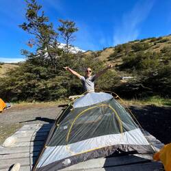 Après une courte nuit en tente nous nous levons en même temps que le soleil. Il faut savoir que la Patagonie est l’un des endroits les plus exposés au vent et la pluie d’Amérique du Sud.