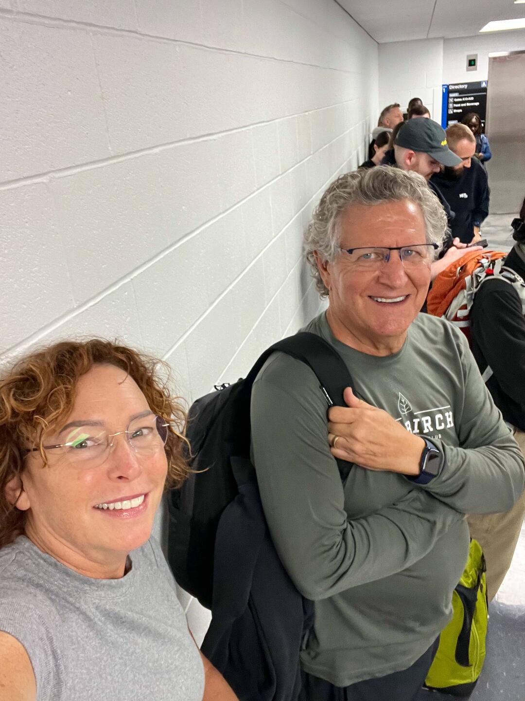 Waiting on the wall for the shuttle to terminal E where all international flights depart. So funny there is no tram.