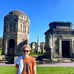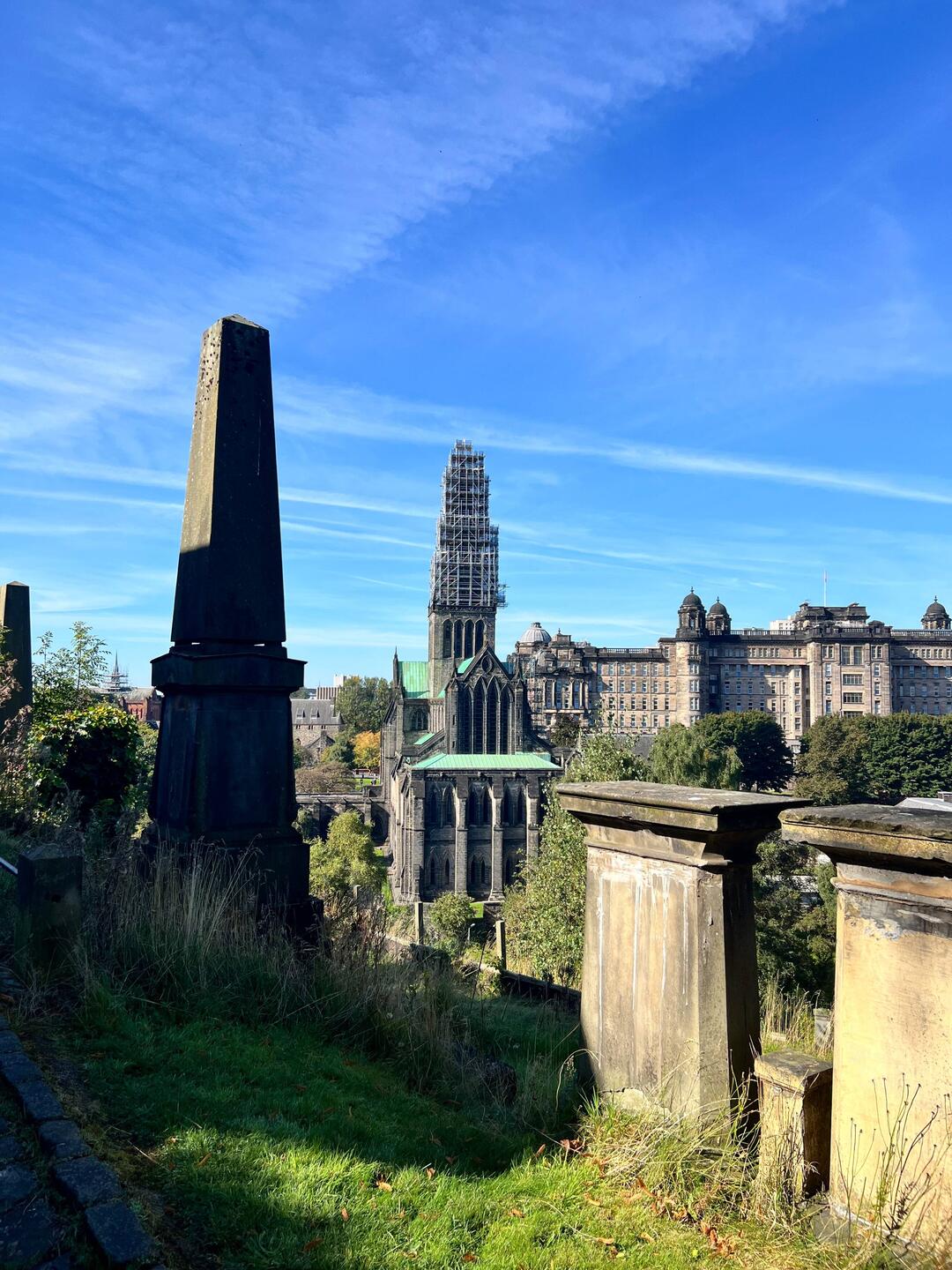 Visiting the famous cathedral and cemetery, learning about whiskey, and sharing three samples, And riding the subway that just goes around in a big circle