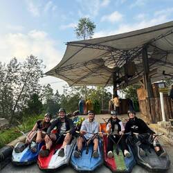 Der "Patenggang Lake" stand als Letztes auf unserem Programm. Damit die Spannung aber nicht verloren ging, durften wir zum See hinunterfahren. Mit einem typischen Bob, aber mit Rädern, fuhren wir zu fünft eine vorgegebene Strasse hinunter. Wir legten ein kleines Wettrennen ein und mussten uns dabei in den Kurven seitwärts hinlegen, damit wir nicht umkippen. Jasmin wurde Drittplatzierte und Tim Zweitletzter.