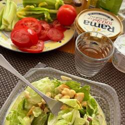 Zum Abendessen gab es Tomaten-Mozzarella-Salat.