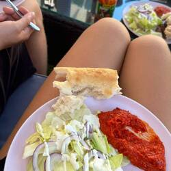 Bei einer Tankstelle holten wir für 1.72 Euro zwei Hähnchen-Spiesschen und zwei Reisportionen aus einer Tüte. Die Konsistenz war so klebrig, dass wir einfach nur abbeissen mussten wie bei einem Riegel.