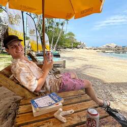 Nach ein wenig Badespass setzten wir uns draussen hin und lösten ein wenig Sudoku. Das einzige negative an diesem Strand sind die dutzenden Fliegen, die sehr lästig sind.