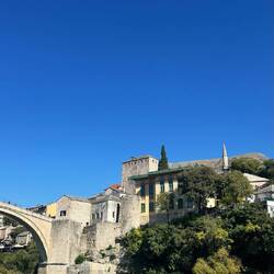 Gegen Mittag erreichten wir "Mostar". Eine Stadt, die vor allem für ihre rekonstruierte osmanische "Stari Most", auch "Alte Brücke", bekannt ist und zum UNESCO-Weltkulturerbe gehört. "Mostar" ist auch ein Symbol für die Teilung des Landes in eine kroatisch-westliche und bosniakisch-östliche Seite. Auch die malerische Altstadt und der durch die Stadt verlaufende Fluss "Neretva" sorgen für jede Menge Tourismus.
