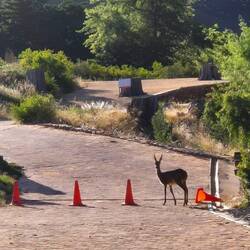Heute brechen wir zu unserer letzten Station nach Hout Bay auf, aber natürlich nicht ohne noch ein leckeres Frühstück mit Ausblick auf der Terrasse zu genießen. Nachdem wir erst am Nachmittag mit Steffi und Bert (auch eine KTP Bekanntschaft von vor 7 Jahren) verabredet sind und das Weingut Spier quasi auf dem Weg liegt, kehren wir dort noch zu einem kleinen Rundgang mit Weinprobe ein. Gleich nach dem Parkplatz steht im Garten eine Kunstinstallation, bei der Steine anfangen zu summen sobald man die Hände an der Seite vorbei führt - sehr interessant. Man kann sogar verschiedene Töne erzeugen...