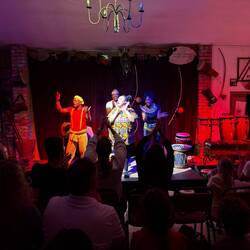 Das Tasting ist aber nur das Vorgeplänkel auf das was kommen soll - die Aufführung von DrumStruck… Afrikanische Musik mit, wie der Name schon erahnen lässt, Trommeln und sonstigen Akustikinstrumenten…. und bei einigen Liedern ist aktive Teilnahme gefragt 😉.