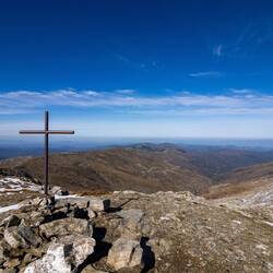 Dann fragen V&M an, ob wir die Wanderung zur Bergstation des Brunccu Spina auf 1829 Hm mit gehen wollen. Bei dem tollen Wetter muss nur Dirk zweimal überlegen 😉 und so starten wir gegen halb neun zum Aufstieg. Wir haben gut 200 Hm zu bewältigen und uns wird dabei zwar gut warm, aber der eisige Wind sorgt doch dafür, dass Handschuhe und Mütze Pflicht sind. Je höher wir steigen, desto öfters durchschreiten wir noch Schneefelder und der Wind legt nochmal kräftig zu! Nichtsdestotrotz ist das Panorama genial und wir genießen die Aussicht. Immerhin stehen auf dem 2. höchsten Berg Sardiniens mit direkten Bllick auf den höchsten Berg Punta La Marmora mit 1835 Hm. Zig Fotos werden auf die SD-Karten gespeichert und bevor uns der eisige Wind ganz durchfrostet treten wir den Rückweg an. Nach gut 2,5 Stunden sind wir wieder zurück und beratschlagen das nächste Ziel.
