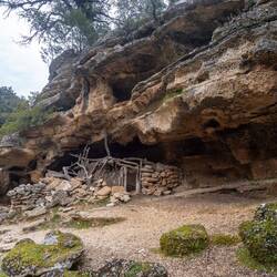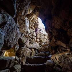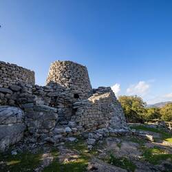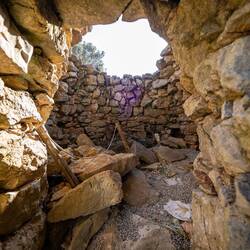 In Ulassei gibt es die übliche Mittagspause mit Cappuccino und Croissant bevor wir weiter zur Nuraghe fahren wollen. Leider sind die Straßen, die uns die Navis vorschlagen, aber soooooo eng, dass wir es aufgeben da mit den Sprintern durchfahren zu wollen. Wir sehen auf der Karte, dass man auch von der anderen Seite bis ca. 1-1,5 km heran fahren kann und dann dorthin laufen könnte. Also los, der Startpunkt ist schnell gefunden und wir ziehen die Wanderschuhe wieder an und machen uns auf den Weg. Die zu überwindenden Höhenmeter waren uns nicht ganz so bewusst, aber wir sind ja inzwischen "eingelaufen" und so kommen wir gut den Berg hinauf. Zuerst kommen wir zu einer großen Grotte unterhalb der Nuraghe und können durch diese hinauf zur Nuraghe steigen. Diese Nuraghe ist die höchstgelegene (954 Hm) auf Sardinien und eine der mit am besten erhaltenen! Wir sind beeindruckt von den alten Gemäuern.