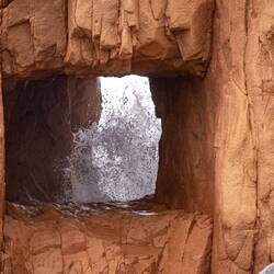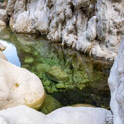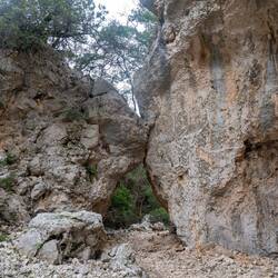 Weiter geht es dann in die Schlucht, nicht ohne das wir beim „Guard“ unseren Eintrittspreis zu entrichten. Wir sind erstaunt dass wirklich jemand zu dieser Jahreszeit am Eingang zum Canyon, an einem Campingtisch, sitzt und die 6 € pP Eintrittsgebühr kassiert. Er erklärt uns noch dass der grün markierte Weg der einfachste ist, der gelbe dann etwas anspruchsvoller und der rote dann zur Alpin/Kletterroute wird. Frohgemuts machen wir uns auf den Weg und die Kletterei fängt auch sogleich an.