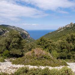 Beim weiteren Abstieg sieht man bereits die über der Bucht aufragende Felsnadel Punta Goloritzé die ein Wahrzeichen der Region ist.