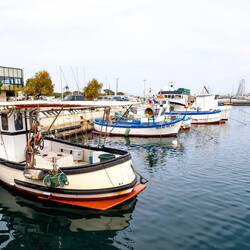Im Hafen finden wir eine geöffnete Gelateria und einen Tisch windgeschützt in der Sonne, der regelrecht nach uns ruft 😊. Wir lassen uns nicht lange bitten und essen jeder ein leckeres Eis begleitet von einem Cappuccino. Ach ist das schön mal so in der Sonne zu sitzen.
