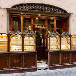 Nach einer Cappuccino Pause kommt auch die Sonne wieder zum Vorschein und wir machen uns auf, einen Bummel durchs Örtchen zu machen. Zuerst müssen wir allerdings in Dirks Lieblingsladen, um für Grappa Nachschub für Zuhause zu sorgen. Dabei mussten wir natürlich auch mal wieder die gute Salami probieren und Schwupp die Wupp hatten wir noch zwei Stück Salami, gut eingeschweißt, im Einkaufskorb 😉.