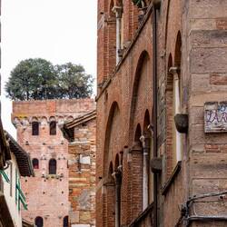 Das Wahrzeichen von Lucca ist ihre gut erhaltene Stadtmauer aus der Renaissance, die das gesamte Stadtzentrum umgibt. Wir parken außerhalb der Stadtmauer und laufen hinein. Auffällig ist, dass alle Häuser in Lucca sehr hoch sind und somit die Strassen und Gassen sehr dunkel wirken. Wir lassen uns durch die Gassen treiben, kommen an der Kathedrale, an verschiedenen Piazzas, sowie am Torre Guinigi vorbei, der mit seinen Eichen auf dem Turm ein Wahrzeichen von Lucca ist. Den Rückweg wählen wir dann über einen Teil der Mura, der alten Stadtmauer.