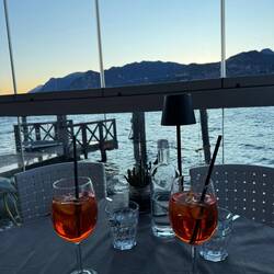 Anschließend schlendern wir durch Malcesine und stellen fest, dass wir es so leer noch nie erlebt haben. Wir gönnen uns zum Sonnenuntergang einen Aperol Spritz gepaart mit Spaghetti Frutti di Mare (sehr lecker 😋 😋) in einem Restaurant direkt am Wasser. Mit den letzten Licht des Tages geht's zurück zum Camper… wieder mal ein schöner Tag.Read more